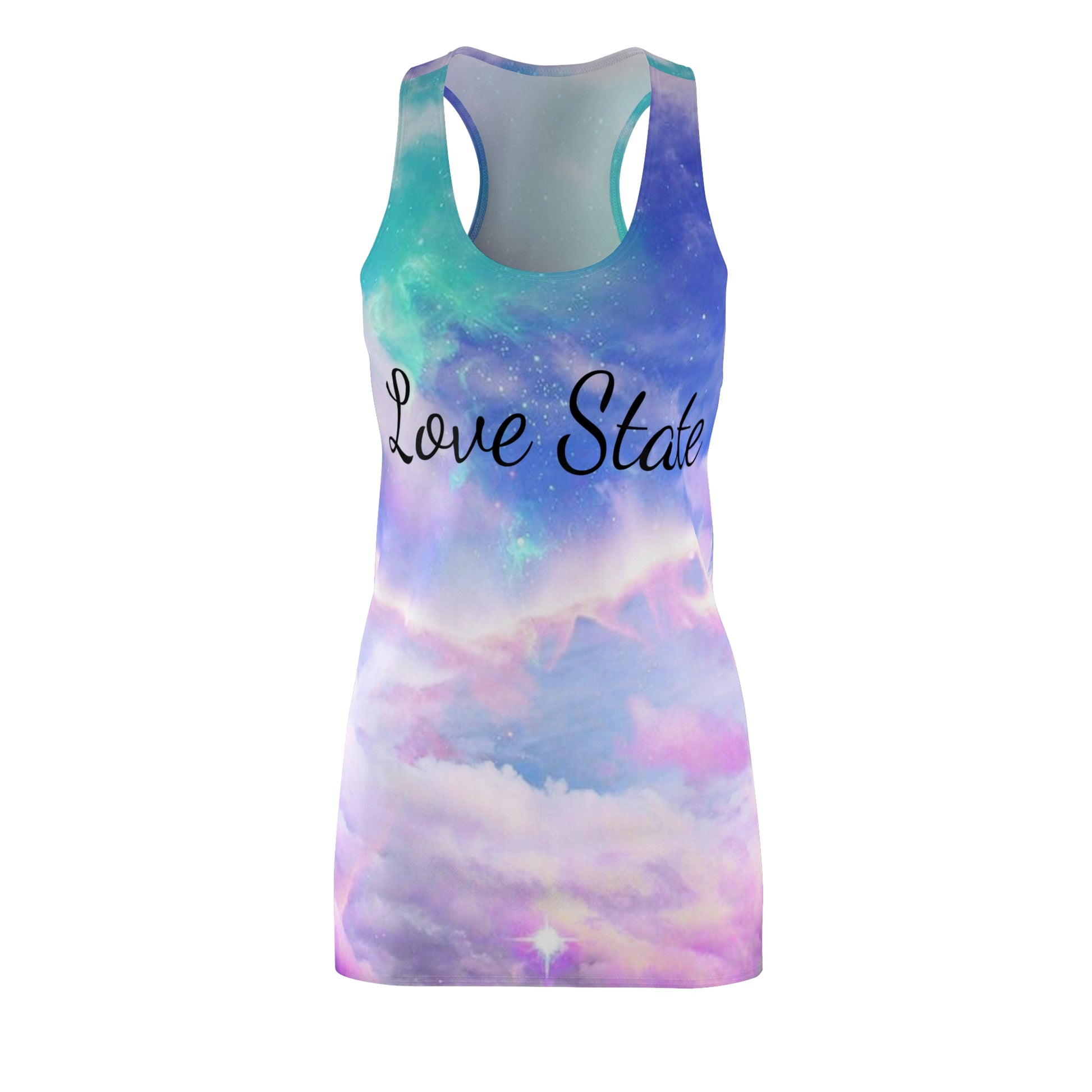 A feminine and stylish, yet really comfortable dress. This high quality AOP racerback dress is appealing from every angle. Inspired by the freedom of creativity, it will instantly become everyone's alltime favorite.